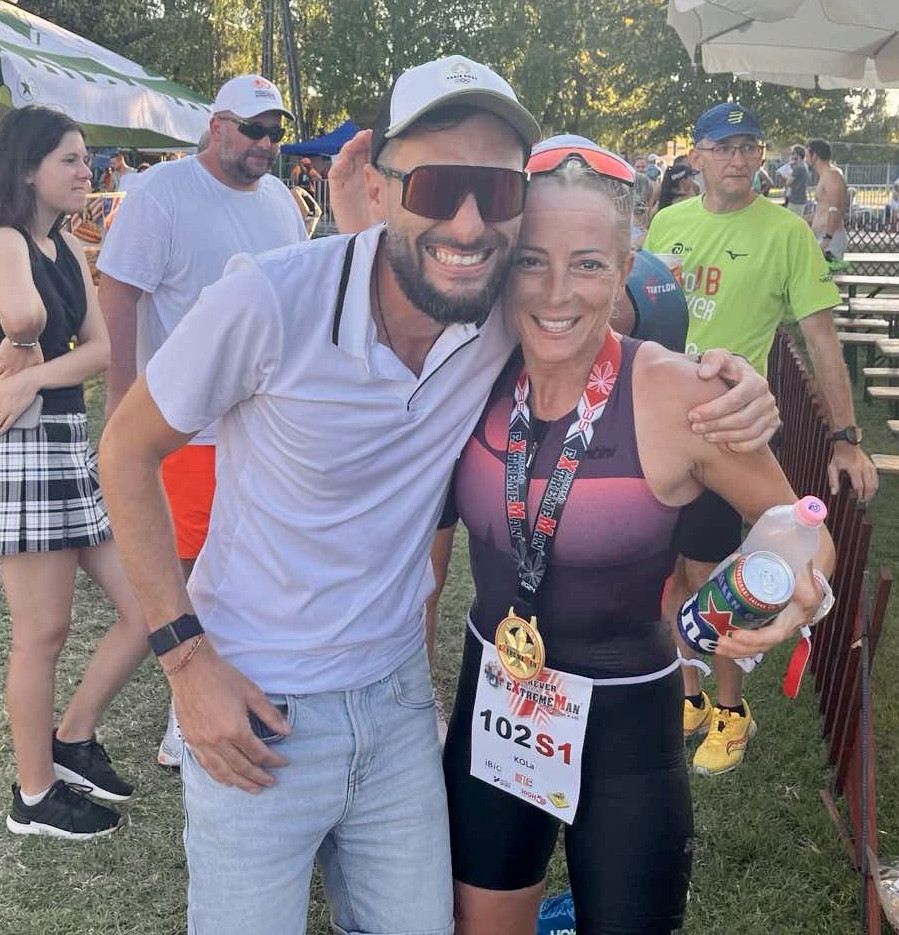 Aztán 2020-ban jött a nagy törés: covidos lettem, és nagyon megviselte a szervezetemet. Gyógytornászként próbáltam kontrollált pulzussal regenerálódni, de a szervezetemet, különösen a tüdőmet nagyon megviselte a betegség. Két hónap után sem bírtam levegőkapkodás nélkül mozogni. A légzésfunkciós vizsgálatok 85%-os kapacitást mutattak. Az orvos úszást javasolt, én pedig 40 évesen elkezdtem úszni tanulni teljesen a nulláról. Beiratkoztam a Honvéd Szondi SE-hez, és innen már szinte természetes volt a lépés a triatlon felé.